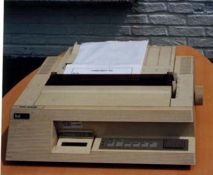 Imprimante pour P.C. format A4 , mais un modèle équivalent, la 4/23 permettait le format A3. tête d'impression à aiguilles frappant un ruban encreur. Connexion au port série .